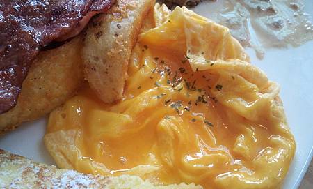 切下去時 蛋黃還流到起司上面呢~