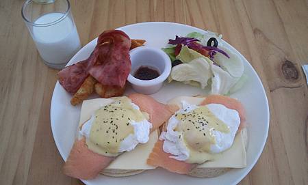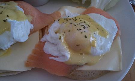 伊麻喜歡他的半熟蛋 但落在鮭魚上面的班尼迪克蛋也好吃