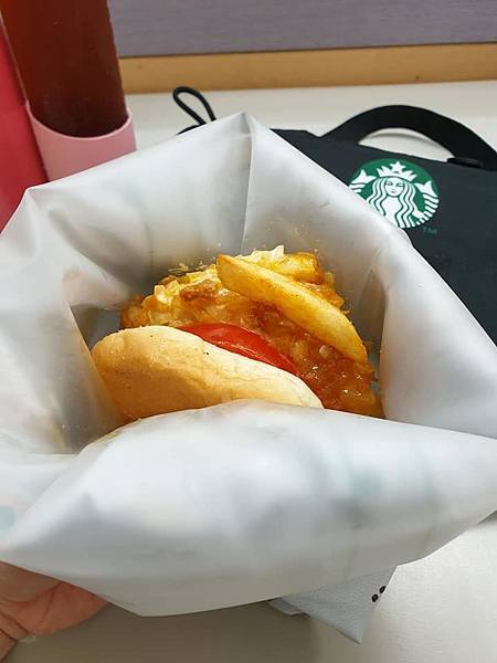 我才請店員裝進輕食袋。